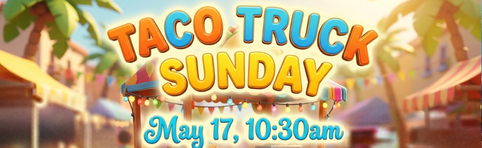 Enjoy energetic singing and a warm Bible message, followed by our annual taco truck event. Every visitor eats free—come hungry and bring a friend!